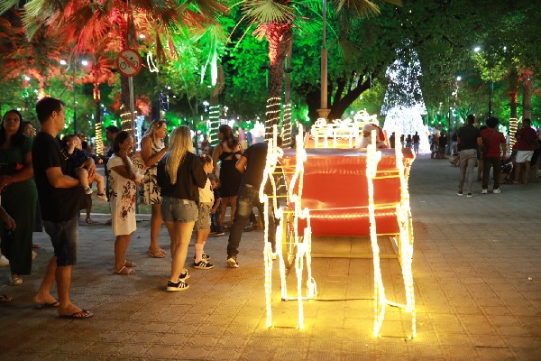 Neste ano, a ornamentação chega ainda mais especial. A praça, que sempre recebe a maior estrutura de decoração, ganha novos cenários, luzes e espaços preparados para que as famílias vivam a experiência natalina. "É a praça onde as famílias irão se confraternizar durante o dia de Natal, a noite do Natal e também na virada do ano. Sempre foi tradicional estar ali", destaca a chefe de gabinete, Sandra Cavalcante.