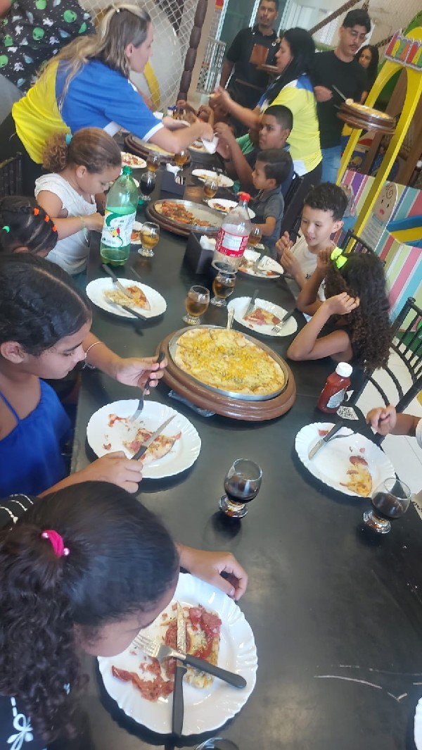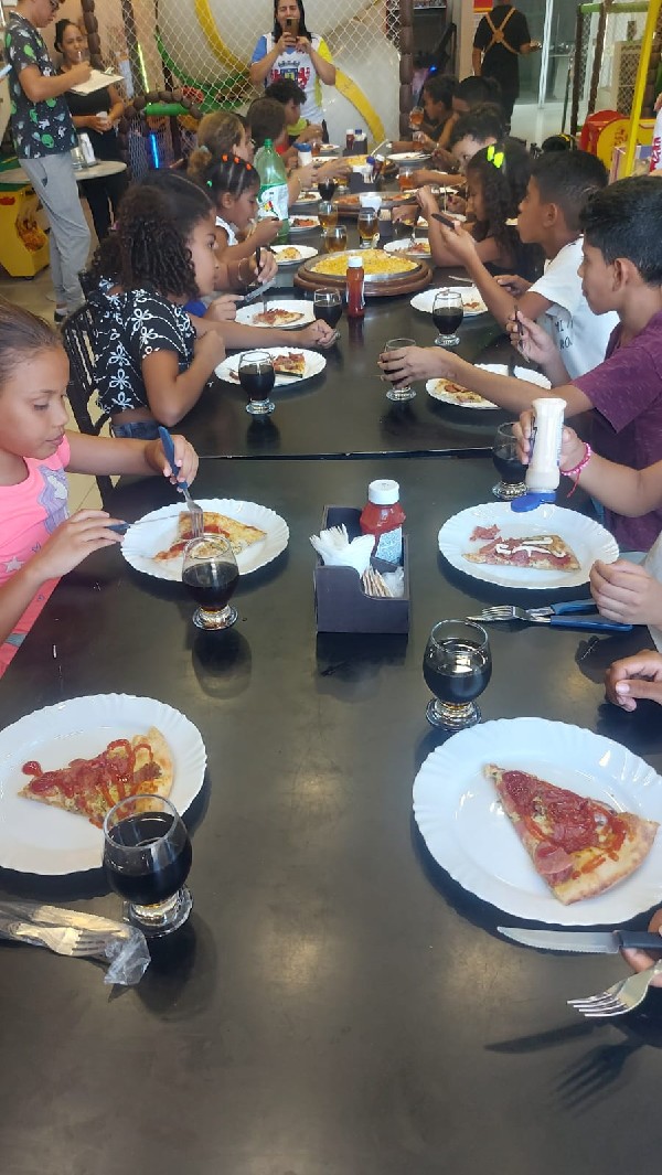 O sentimento de descoberta de um novo sabor na infância e a alegria do Mariano foram alguns dos sentimentos que marcaram a parceria entre o CRAS Horto e a Pizzaria Oba, que ocorreu na tarde desta terça-feira, 7, e proporcionou um momento de lazer, rodadas de pizzas e o fortalecimento dos laços afetivos entre as crianças.