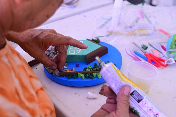 A artesã Liliane Albuquerque também representa essa força criativa. Autodidata, transformou o artesanato em profissão e, ao longo dos anos, passou a compartilhar seus conhecimentos com outras pessoas. Durante a última semana de outubro, ela ministrou a oficina de personalização de sandálias, incentivando a autonomia financeira e a continuidade das tradições manuais.