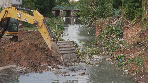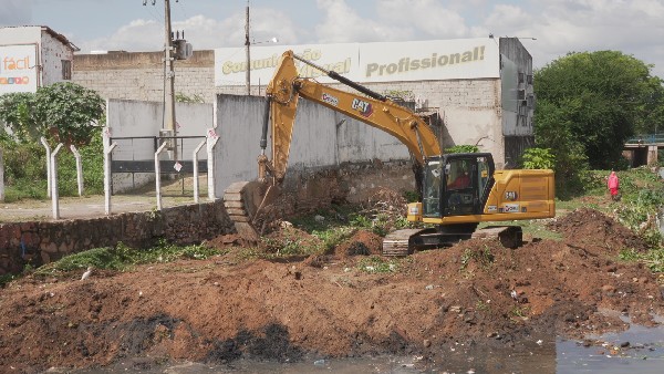 O Riacho das Timbaúbas, que deságua no canal da Avenida Castelo Branco, está passando por serviços de limpeza e desobstrução com o uso de escavadeira hidráulica. A limpeza mecanizada permite a retirada de lama, sedimentos e outros materiais que comprometem o percurso natural do riacho, contribuindo para a melhoria do escoamento das águas. O serviço é executado pela Secretaria de Infraestrutura (Seinfra).