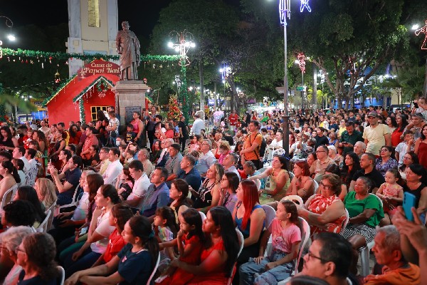 A programação também contou com espetáculo da Companhia Traquejo, que levou ao público uma apresentação com valores de cooperação, criatividade e esperança. A Banda de Música Padre Cícero completou o momento com clássicos natalinos.
