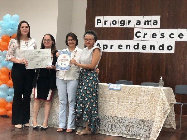 A Secretaria de Educação de Juazeiro do Norte realizou nesta sexta-feira, 3, a solenidade de entrega de placas para as 15 unidades educacionais participantes do Programa Crescer Aprendendo. O Programa é desenvolvido por uma das maiores organizações filantrópicas internacionais em parceria com Governo do Estado, através do Programa Mais Infância.