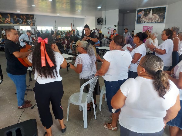 Com a presença de 35 idosos no coral, o grupo Mão Amiga, coordenado pelo artista Luciom Caeira, apresentou-se, no Restaurante Popular de Juazeiro do Norte, nesta quinta-feira, 31, durante o horário de funcionamento do equipamento.