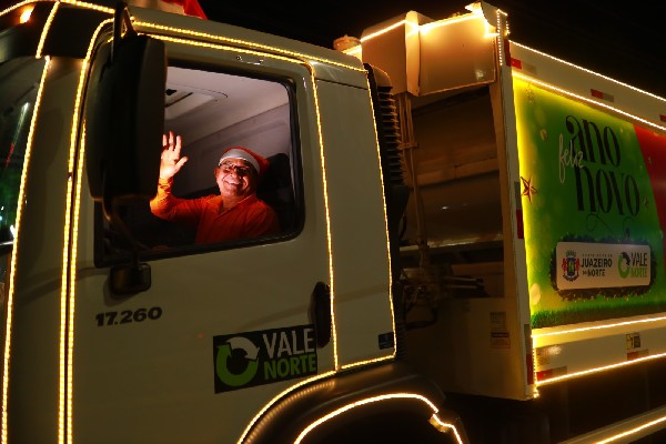 Nessa segunda, 2, as ruas de Juazeiro foram tomadas pela animação de um caminhão de coleta decorado com enfeites natalinos. A Prefeitura de Juazeiro do Norte, em parceria com a Vale Norte, vinculada à Secretaria de Meio Ambiente e Serviços (SEMASP), disponibilizou o veículo para o período natalino, com rotas específicas pelo município.