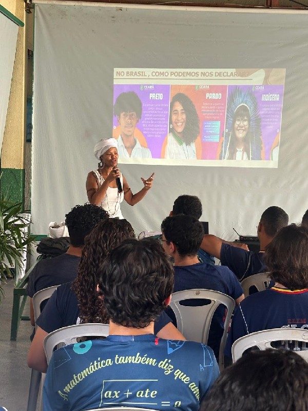 O Núcleo de Educação e Promoção da Igualdade Racial (NEPIR) da Prefeitura de Juazeiro do Norte promoveu, nessa quarta-feira, 28, uma palestra na Escola de Ensino Médio Clotilde Saraiva. Durante o evento, foram abordados o canal de denúncias de racismo e a campanha do Maio Antirracista. A ação integra as atividades de conscientização e combate ao racismo no município desenvolvidas pelo NEPIR visando a equidade racial.