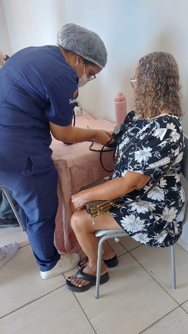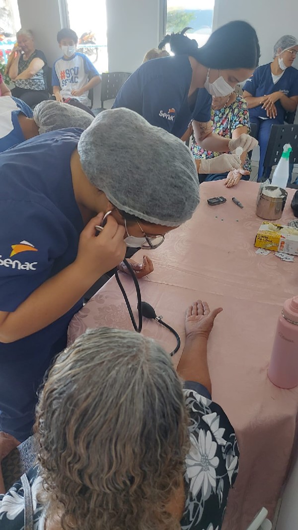 Durante a manhã, os participantes tiveram acesso a atendimentos em podologia, enfermagem, nutrição, fisioterapia e fonoaudiologia, além de aferição de pressão arterial e teste de glicemia. A programação incluiu ainda música ao vivo e coffee-break, proporcionando bem-estar e integração.