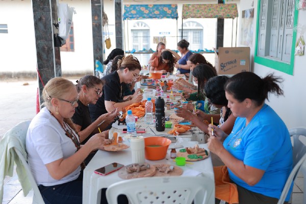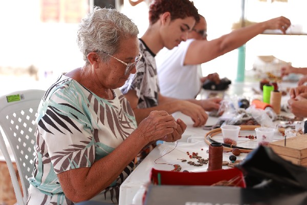 A artesã Liliane Albuquerque também representa essa força criativa. Autodidata, transformou o artesanato em profissão e, ao longo dos anos, passou a compartilhar seus conhecimentos com outras pessoas. Durante a última semana de outubro, ela ministrou a oficina de personalização de sandálias, incentivando a autonomia financeira e a continuidade das tradições manuais.