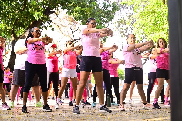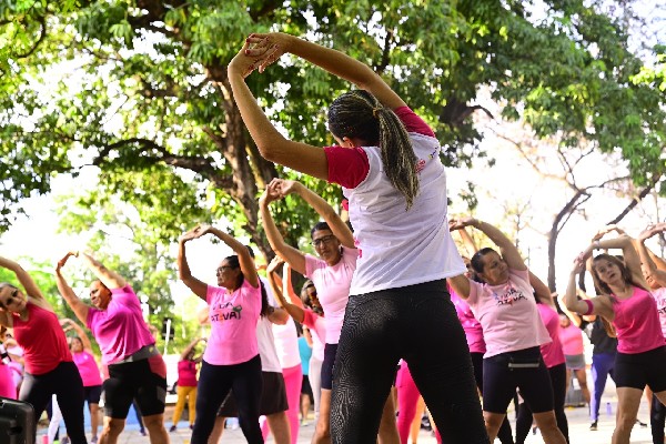 Nesta sexta-feira, 31, a Secretaria de Saúde de Juazeiro do Norte (Sesau) realizou a culminância das ações do Outubro Rosa, mês dedicado à Saúde da Mulher, com uma caminhada orientada no Parque das Timbaúbas. Voltada exclusivamente ao público feminino, a Caminhada Rosa é um ato simbólico que reforça a importância do autocuidado, por meio da prática de atividades físicas e da realização dos exames preventivos. Além da caminhada, durante esta manhã as participantes também tiveram um aulão de Zumba.