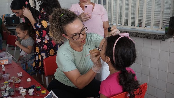 Para crianças e jovens, o programa ofereceu pintura facial, desenhos para colorir, pula-pula e outras atividades de lazer. A moradora Graciane Damasceno levou a filha para se vacinar e aproveitou os serviços infantis enquanto também realizava atendimento médico.